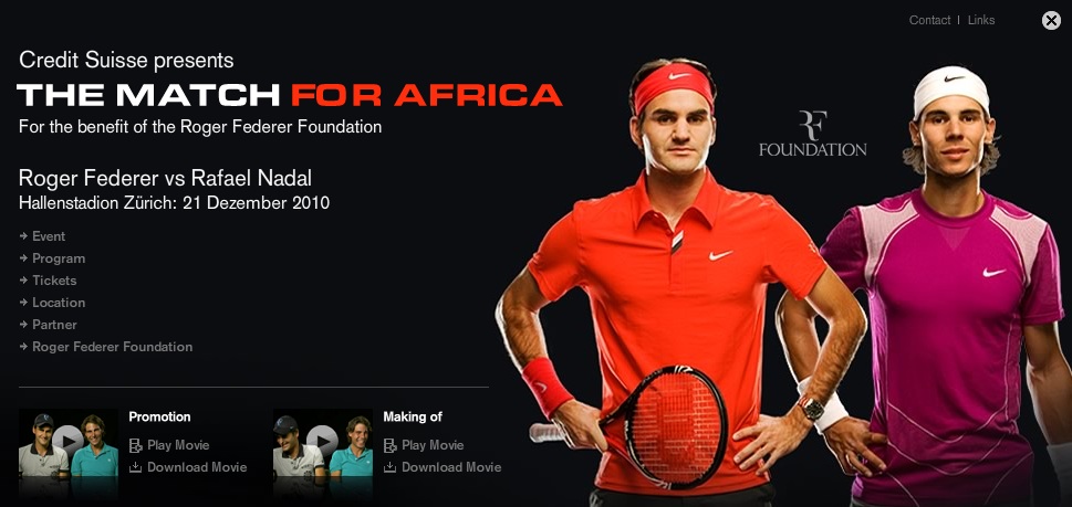 В него Фед и Рафа рекламират двубой, организиран от фондацията на Федерер. Разбира се тонът е шеговит.