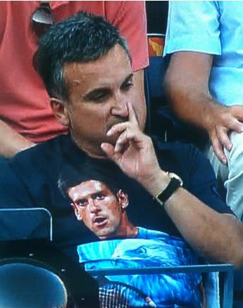Бащата на Новак Джокович - Сърджан също се превърна в обсъждана тема на US Open. Той се бе изтипосал в ложата на Ноле със забавна фланелка с лика на своя син.