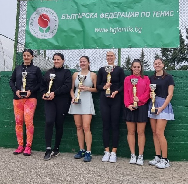 Във финала на двойки при жените Валерия Гърневска (ТК „ДМ Тенис", гр. Стара Загора) и Рафаела Симеонова (ТК „Ямбол 2005", гр. Ямбол) победиха с 6:2, 2:0 и отказване Лютфия Велиева (ТК „НСА", гр. София)/Хюлия Велиева (ТК „НСА", гр. София). На трето място се класираха Биляна Павлова-Димитрова (ТК „Дема", гр. София)/Джулия Терзийска (ТК „Дема", гр. София) и Моника Кирилова (ТК „Вектор Тенис Спорт", гр. София)/Ралица Александрова (ТК „Академия Йорданови", гр. София).