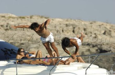 Освен на дамите, двамата очевидно се забавляват повече от добре на Ибиса. Двамата шоумени дори разиграха една от основните сцени във филма "Титаник" между Леонардо Ди Каприо и Кейт Уинслет.
