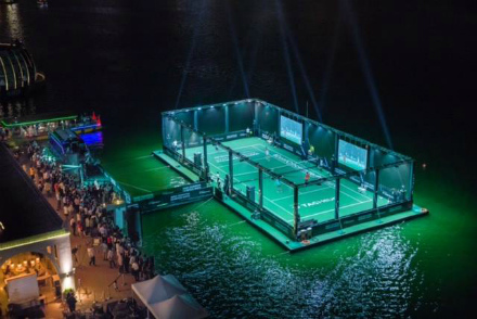 След това 28-годишната най-богата спортистка в света поигра тенис на специална плаваща платформа. Съоръжението с размер 35 на 17 метра е било направено за 10 дни.