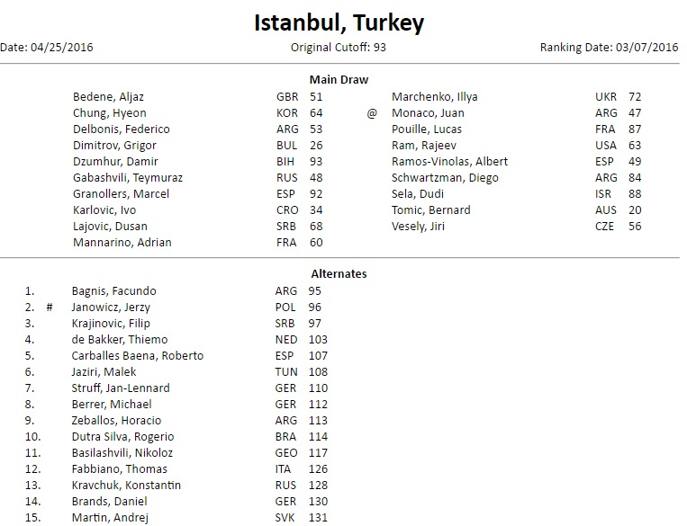 Сред по-любопитните имена в Истанбул са Иво Карлович, Хуан Монако, Адриан Манарино, Иржи Весели, Диего Шварцман и др. Припомняме, че турнирен директор на Istanbul Open е Стефан Цветков.