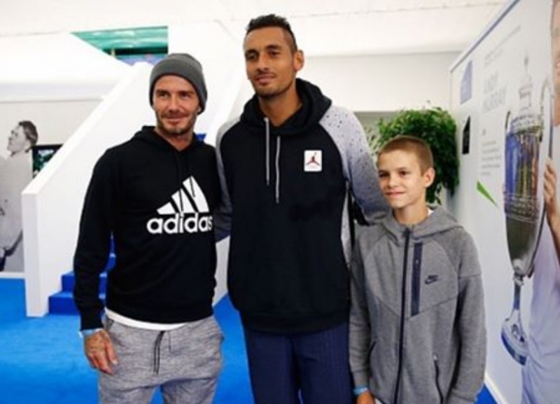 „Ромео Бекъм поиска да се снима с мен. Аз пък поисках да се снимам с татко му, легендата“, написа след това Кириос в Instagram.