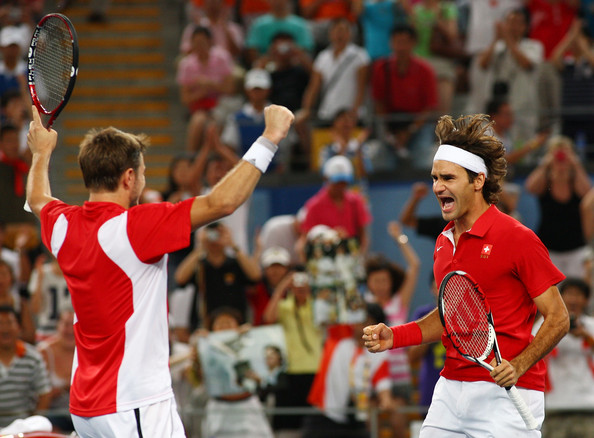 На двойки триумфираха Роджър Федерер и Стан Вавринка. По пътя си швейцарците отстраниха смятаните за непобедими братя Боб и Майк Брайън, а на финала е справиха в четири сета с шведите Симон Аспелин и Томас Йохансон. Големият Роджър не сдържа сълзите си от радост при победата и след това на почетната стълбичка.