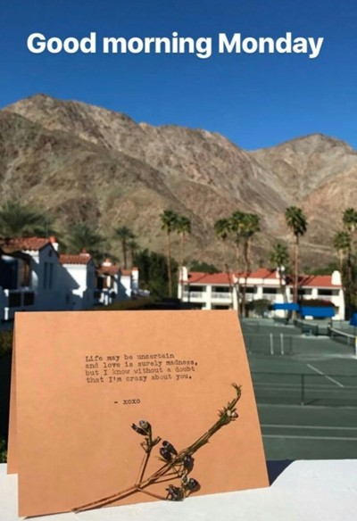 "Животът може да е несигурен и любовта със сигурност е лудост, но знам, без съмнение, че съм луда по теб", пише на картичката на Гришо.
