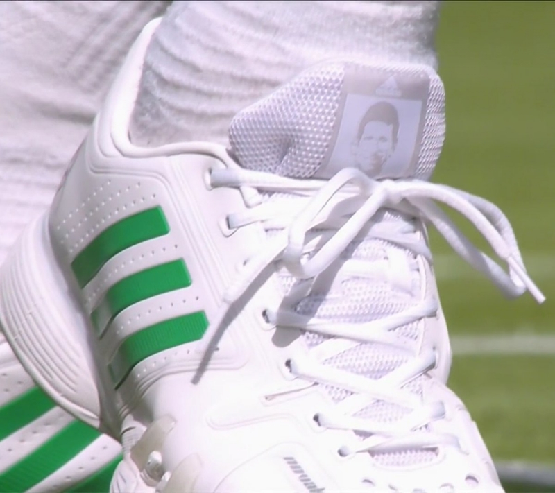 От „Би Би Си” обаче хванаха любопитен кадър, който показва, че Джокович все пак е „присъствал” на полуфиналите. Оказа се, че Бердих е използвал маратонките именно на сърбина, чието лице е на езика на спортните обувки.