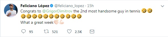 Гришо получи стотици честитки, а една от тях дойде именно от Лопес, който продължи закачката: „Поздравления за Григор Димитров, вторият най-красив играч в Тура. Каква страхотна седмица за него“.