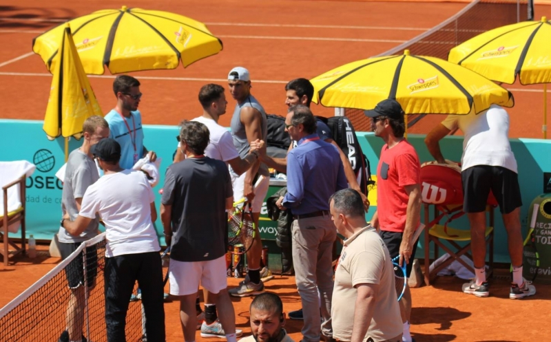 Рафа бе с екип от петима души, сред които и настоящият му треньор Карлос Моя, а тренировката наблюдаваха над 500 души в Мадрид.