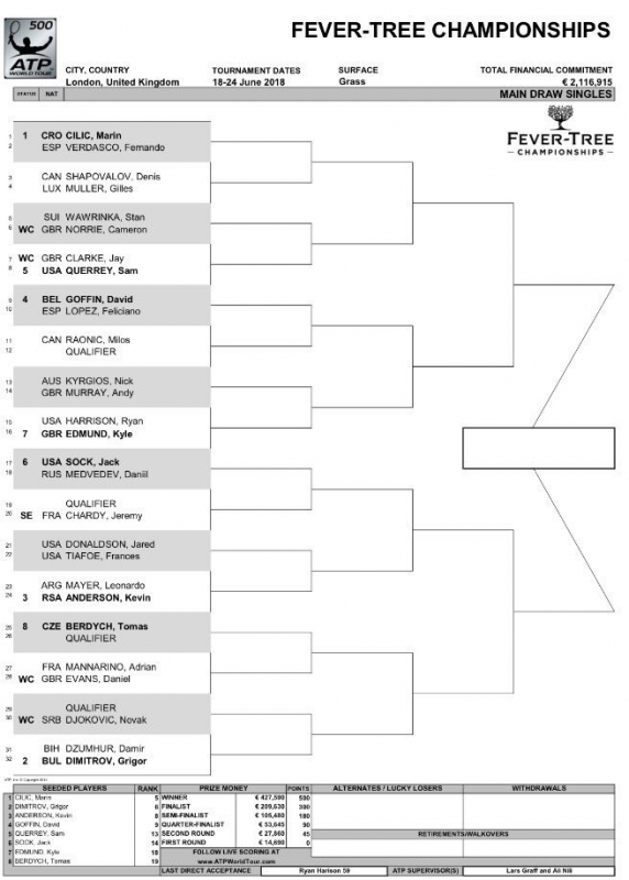 В последния момент участие от турнира в Куинс декларираха Рафаел Надал и Хуан Мартин дел Потро, които изтъкнаха като основен мотив за решението си натрупаната умора.