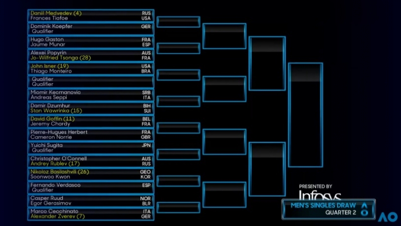 Първият поставен играч, с когото Джокович може да се срещне в Мелбърн е Даниел Евънс. Дуел между двамата е възможен в третия кръг. Най-опасният съперник за Джокович, поне на хартия, на осминафиналите е Диего Шварцман. На четвъртфиналите пък е възможен сблъсък със Стефанос Циципас.