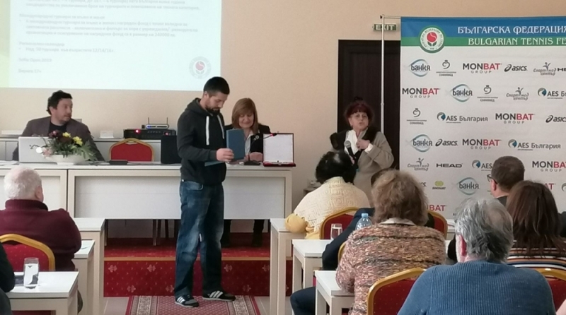 След един час забавяне за събиране на нужния кворум, Общото събрание започна с приветствие на Стефан Цветков и отличаване с плакети за своя принос в развитието на българския тенис на Николай Манчев и треньора Ивайло Илиев. Специален плакет за изключителния си пронос и по случай своя 70-годишен юбилей пък получи членът на УС на БФТ Мариана Печеян, която бе домакин в хотел „ВСК Кентавър" в Дряново.