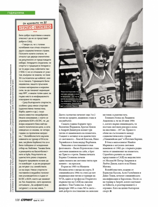 - Мисля, че у нас не е имало реални опасения. Имаше опасения, че ще се работи върху нашите спортисти да останат там, но специално ние не сме имали такъв мотив, заради който да не отидем на олимпиадата. Още повече че наши спортисти много бяха ходили и в Америка, и в Канада... В Съветския съюз обаче малко повече се страхуваха в това отношение. Действително върху техните спортисти много повече се работеше за оставане..jpg)
