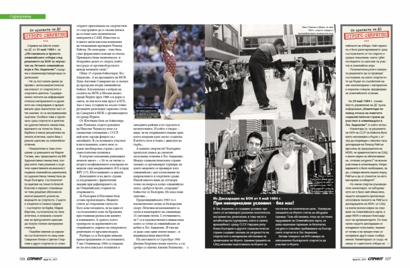 Справка на Шести отдел на ДС от 25 май 1984 г. за „Обстановката в проектоолимпийските отбори след решението на БОК за неучастие на Летните олимпийски игри в Лос Анджелис“ съдържа и взаимнопротиворечащи си донесения: