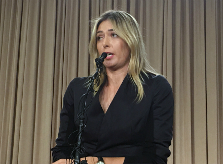 На пресконференция в Лос Анджелис Шарапова обяви, че е дала положителна проба за употреба на веществото мелдоний. Медикаментът влезе в забранения списък от началото на 2016 г., като рускинята обясни, че не е проследила информация от Световната антидопингова агенция. Веществото помага при нарушено кръвообращение в мускулите и прави организма по-издръжлив при физическо натоварване.