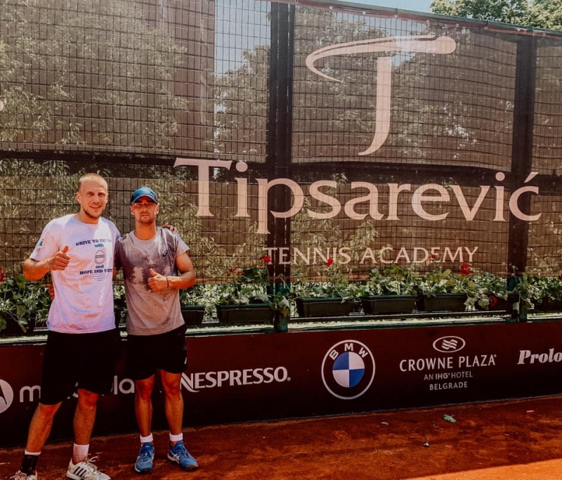 (Димитър Кузманов и Мирза Башич на кортовете в Белград)