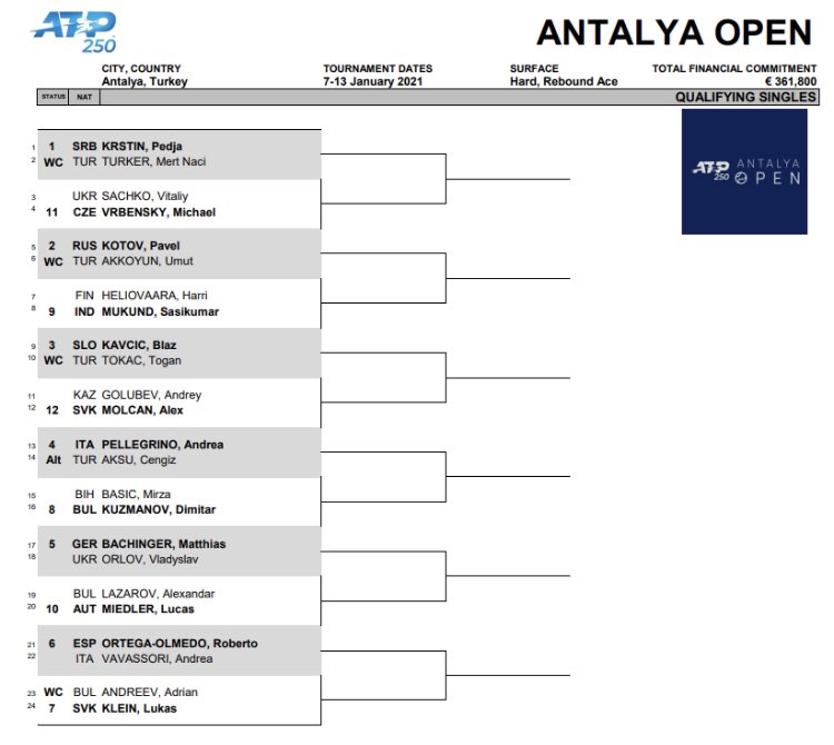 Първите срещи от квалификациите в Анталия започват във вторник.