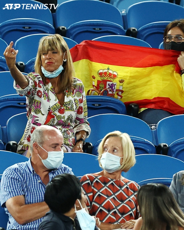 Не стана ясно с какво испанецът предизвика реакцията на жената, като най-вероятната причина са няколко обърнати от дамата питиета, което не е рядко явление в историята на Australian Open.