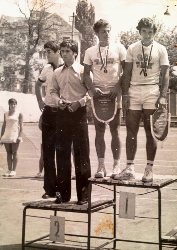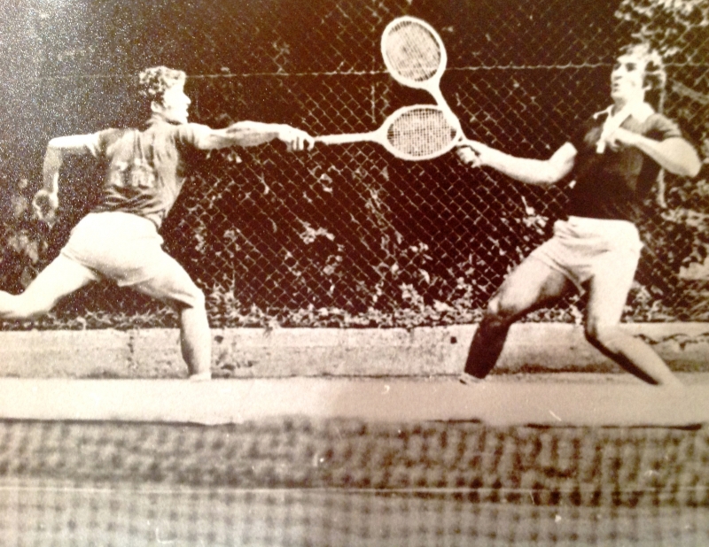(Тандемът от двама много силни „дъблови” тенисисти – Л. Петров(вдясно) и Стоян Велев, е на стълбичката на победителите през 1975 г. Този път втори са братя Пампулови)