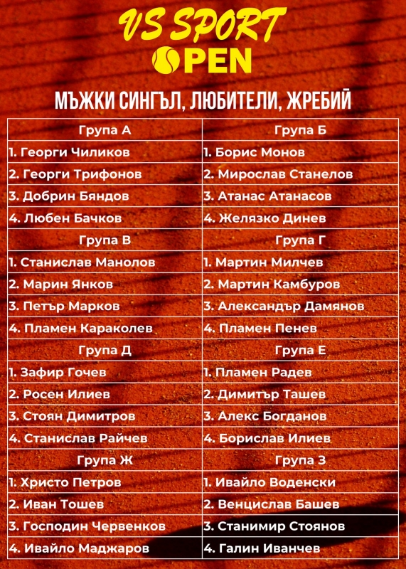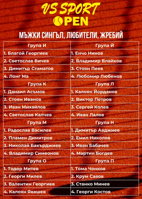 Изключително силни групи ще противопоставят участниците в любителския формат на най-големия аматьорски турнир по тенис VS Sport Open.
