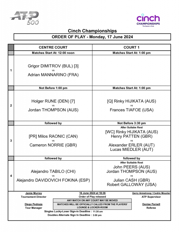 Димитров пък има отлични спомени от турнира в Куинс Клъб, който той успя да спечели преди точно 10 години. Миналата година българинът взе решение да се пусне от квалификациите, като успя да запише общо 4 победи, преди да отстъпи пред бъдещия шампион Карлос Алкарас.