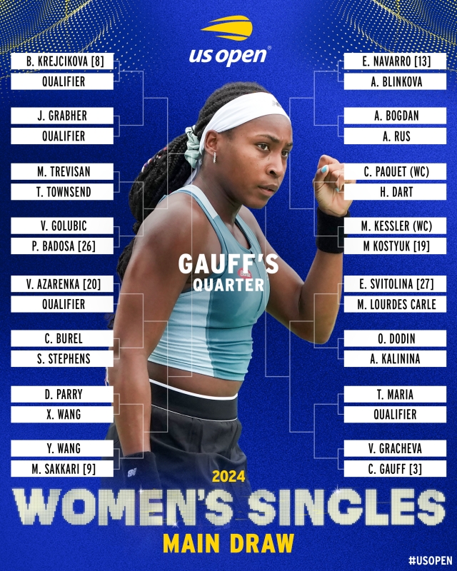 Шампионката от миналата година Коко Гоф от САЩ е поставена под номер 3 и започва срещу Варвара Грачова от Франция. Гоф и Сабаленка, които играха на финал през миналата година, могат да играят една срещу друга на полуфиналите.