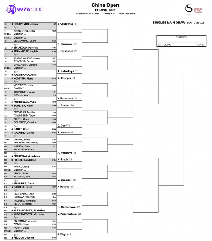 Номер 1 в схемата е Арина Сабаленка, а номер 2 Джесика Пегула.