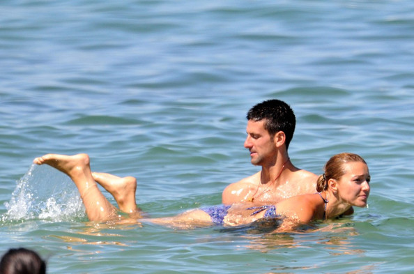 Заедно с гаджето си Йелена Ристич и свои приятели, Джокович разнообразява дните си с игра на волейбол.